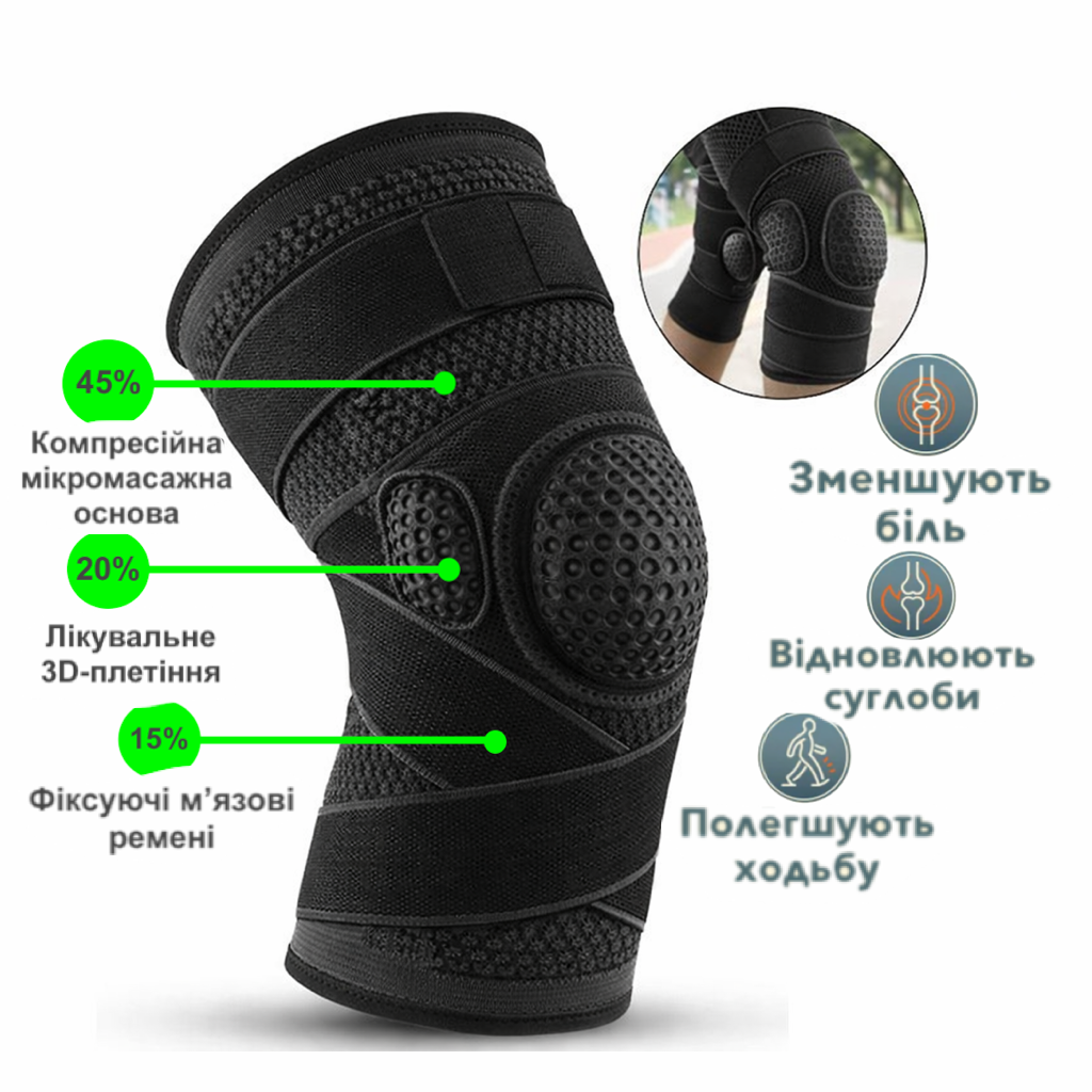 Наколінник забезпечує відмінну стабілізацію колінної чашечки, допомагає під час ходьби.