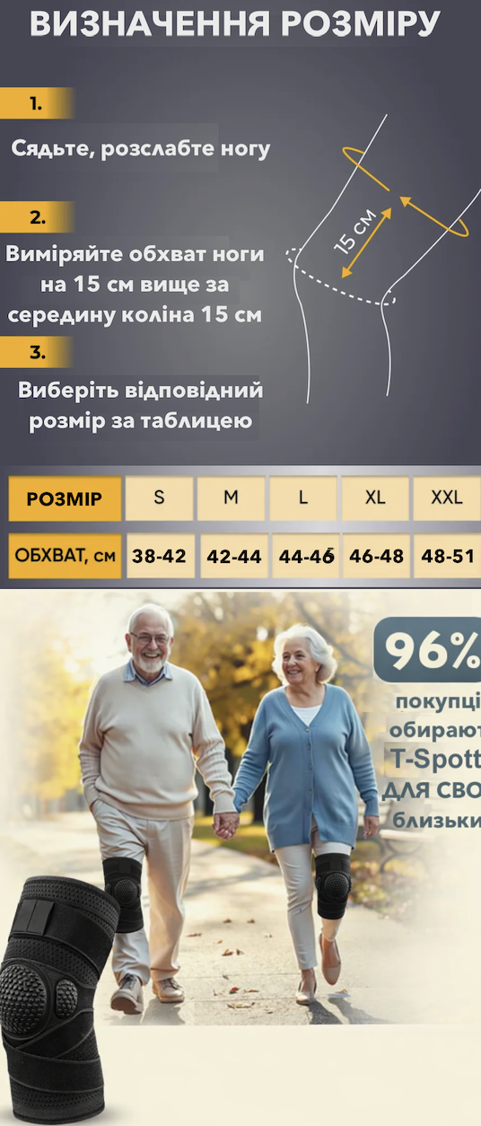 Маю артроз і проблеми з коліном вже кілька років. Придбав цей фіксатор — одягаю, коли йду на дачу або в магазин. Стало набагато легше рухатись, коліно менше втомлюється.